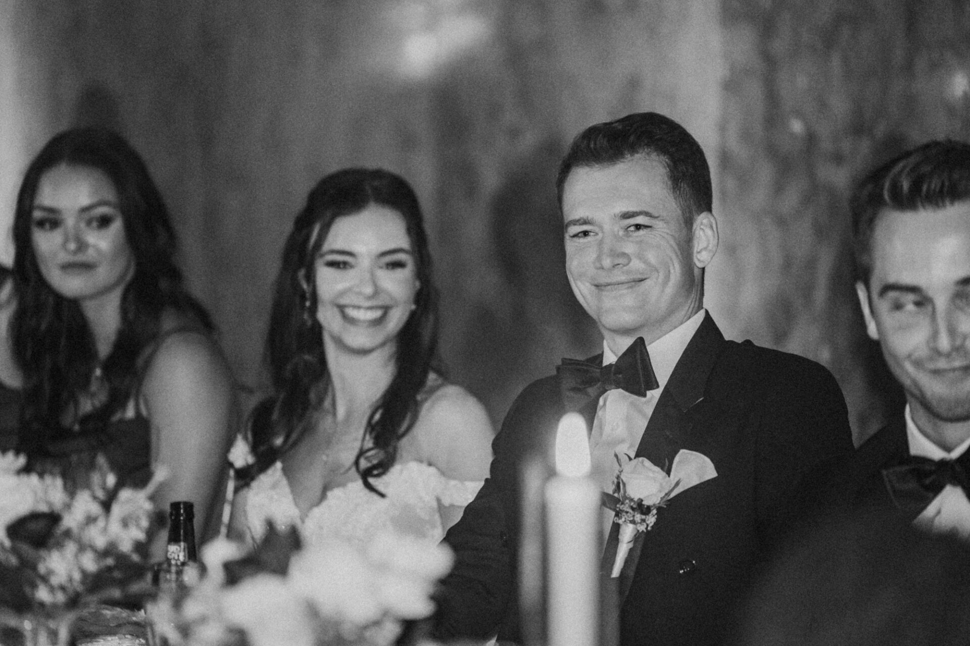 Once the reception began, the energy in the room shifted into celebration mode. The evening flowed from heartfelt toasts to cake cutting and a romantic first dance.