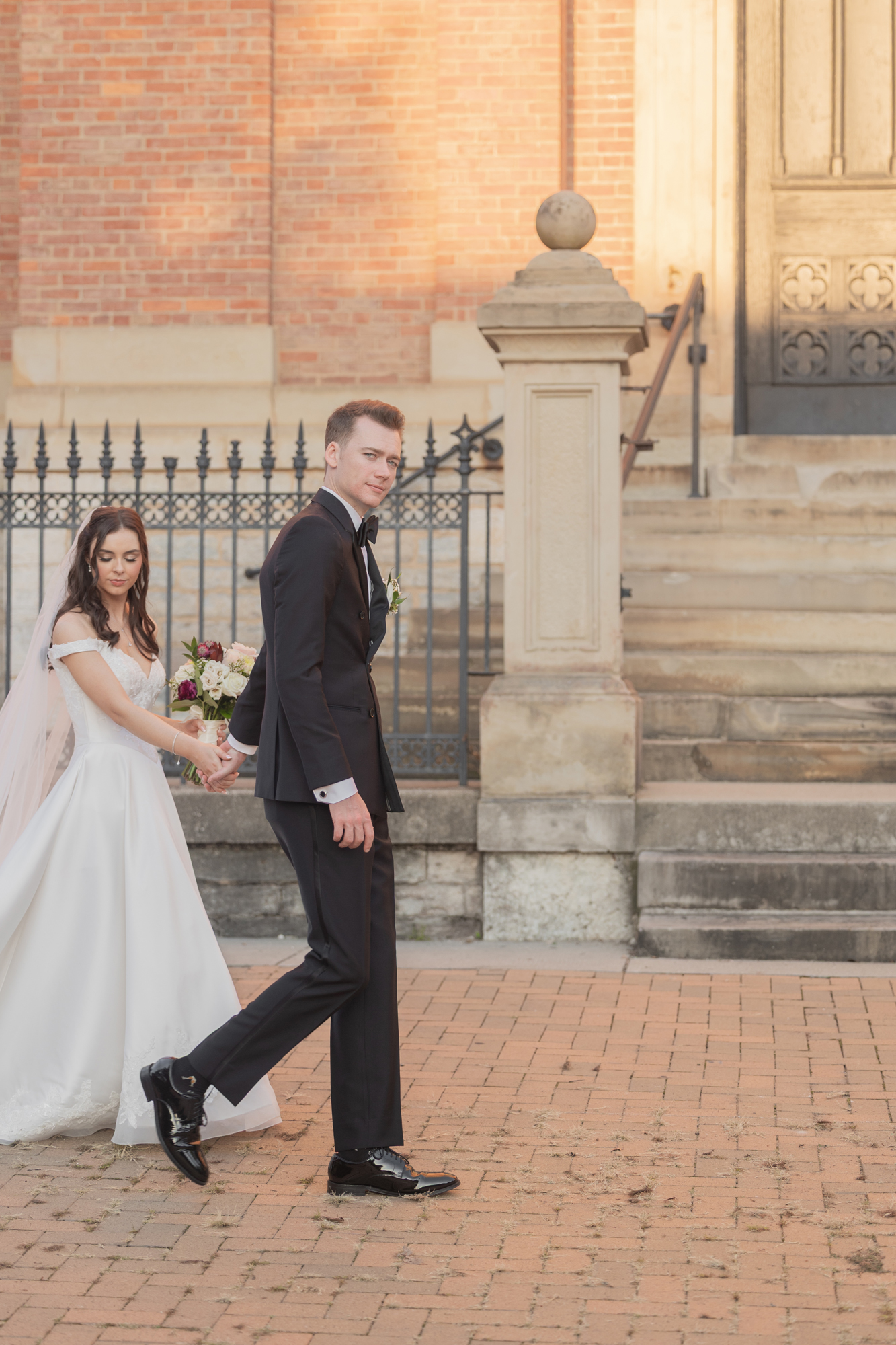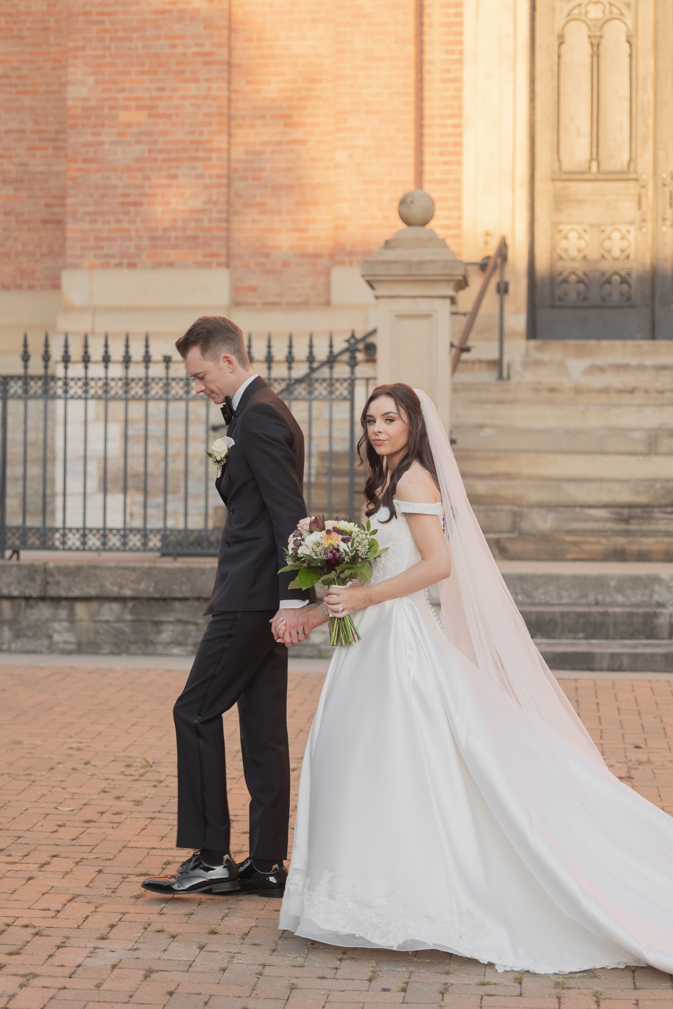 Olivia and Ian’s New Year’s Eve wedding in Cincinnati was the perfect way to ring in the new year. From getting ready and their first look at 21c Museum Hotel Cincinnati, to romantic portraits at Procter & Gamble Gardens, a stunning ceremony at St. Xavier Church surrounded by poinsettias, and an unforgettable reception at The Cincinnati Club complete with a live band, karaoke, and a midnight balloon drop, their celebration was filled with energy, elegance, and nonstop joy. This downtown Cincinnati wedding blended timeless fashion, iconic venues, and a true New Year’s Eve party atmosphere.