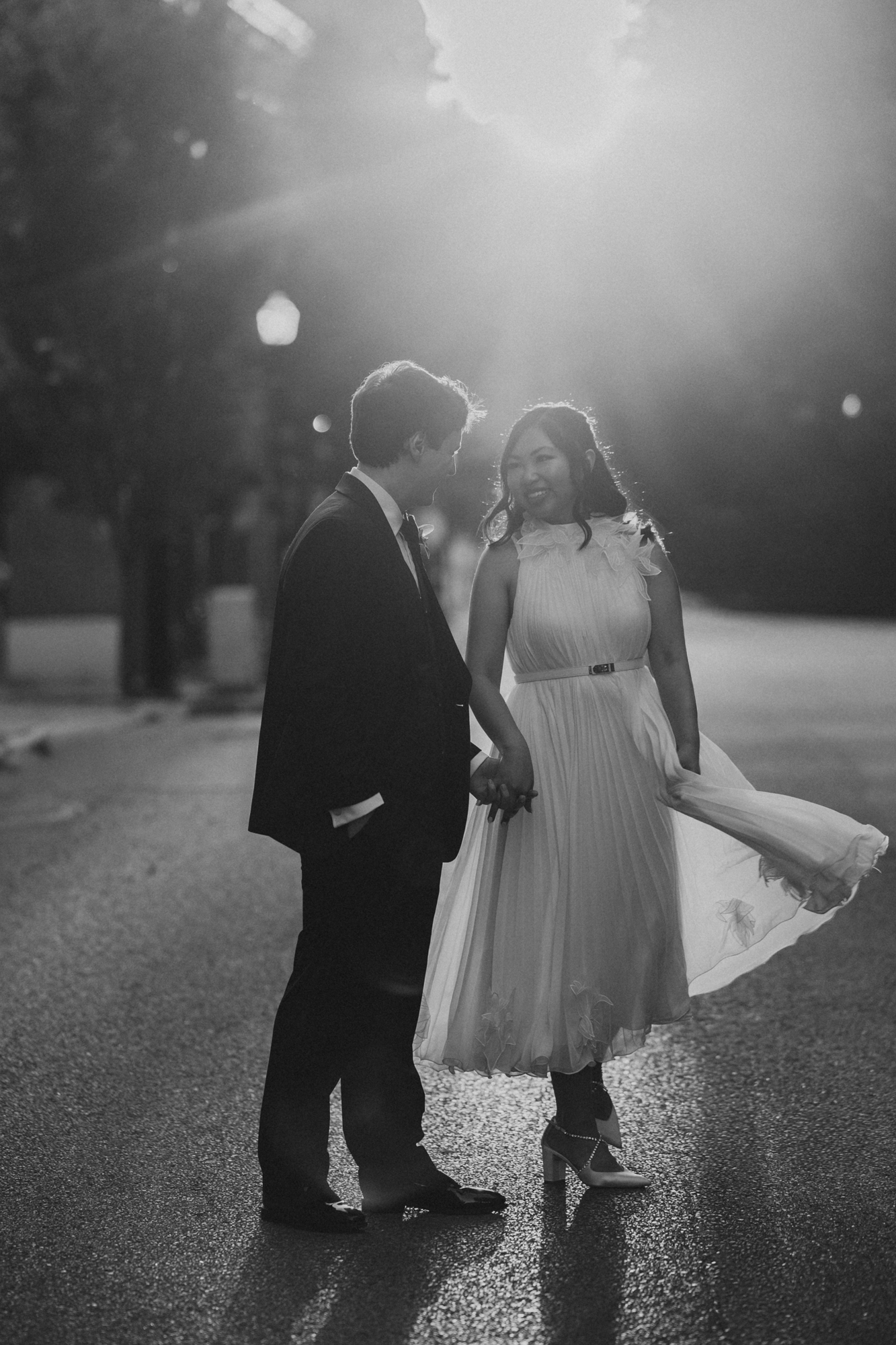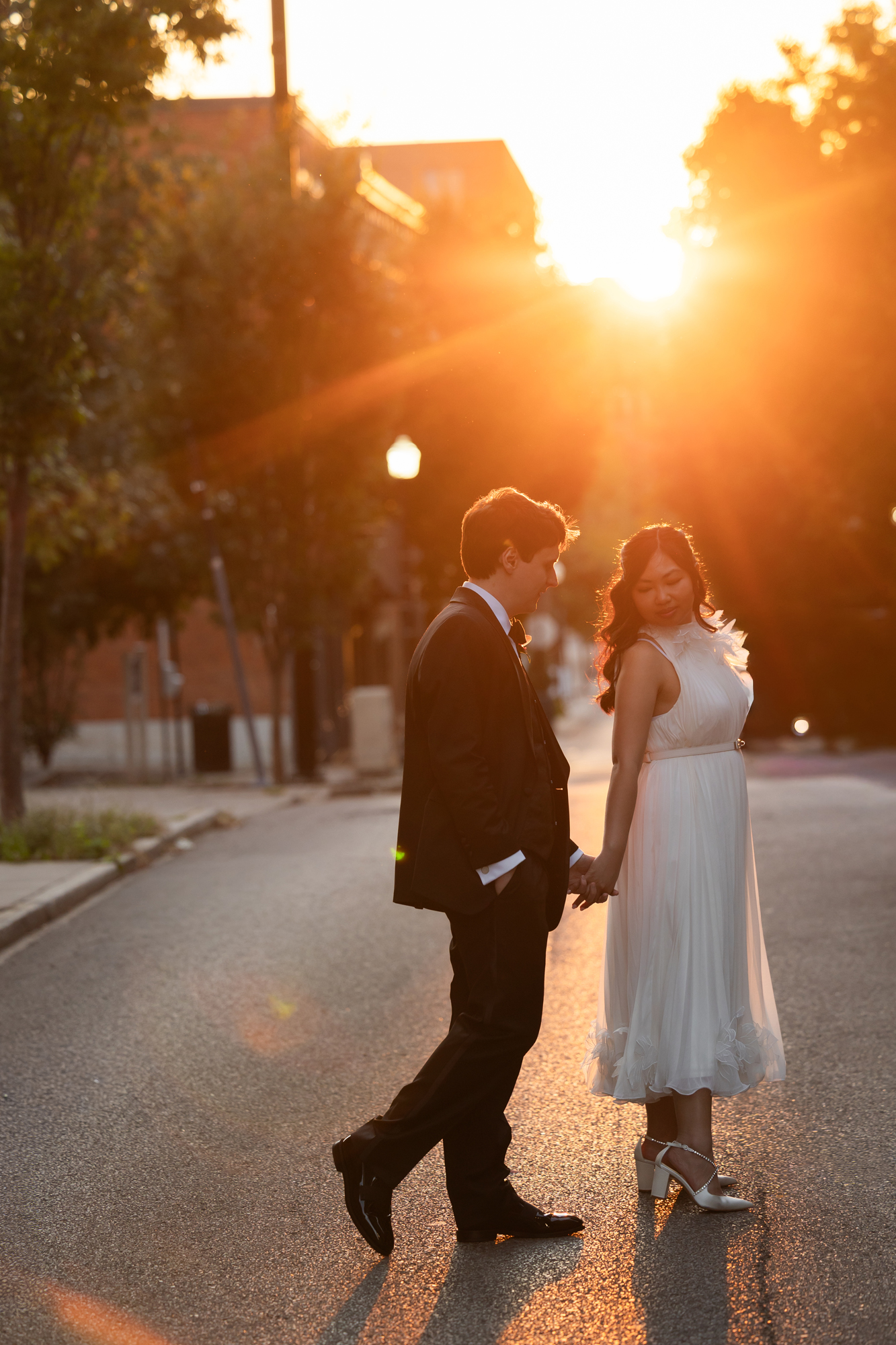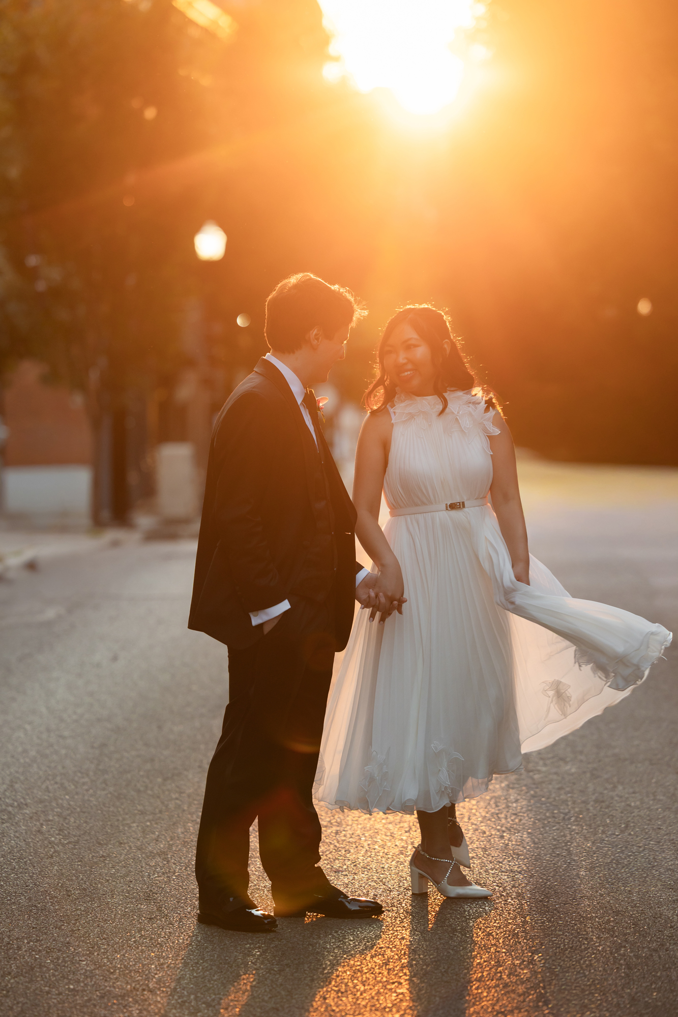 the entire street seemed to glow. Their sunset portraits were filled with warmth, softness, and that unmistakable “just married” feeling. These moments felt peaceful, intimate, and full of meaning — a beautiful pause before heading into the celebration.