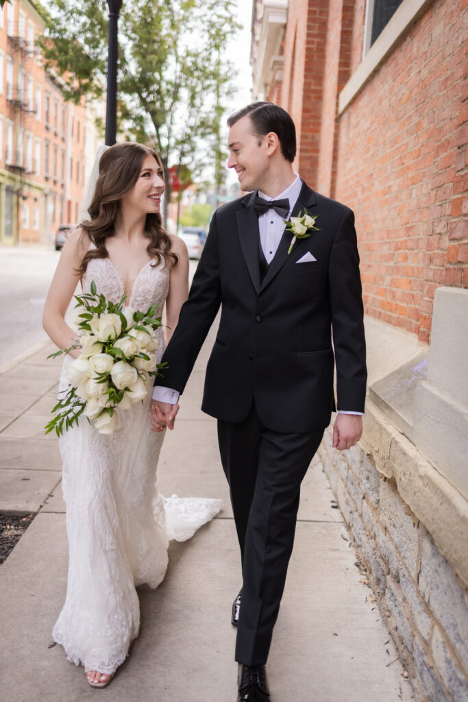 Olivia and Ian’s New Year’s Eve wedding in Cincinnati was the perfect way to ring in the new year. From getting ready and their first look at 21c Museum Hotel Cincinnati, to romantic portraits at Procter & Gamble Gardens, a stunning ceremony at St. Xavier Church surrounded by poinsettias, and an unforgettable reception at The Cincinnati Club complete with a live band, karaoke, and a midnight balloon drop, their celebration was filled with energy, elegance, and nonstop joy. This downtown Cincinnati wedding blended timeless fashion, iconic venues, and a true New Year’s Eve party atmosphere.