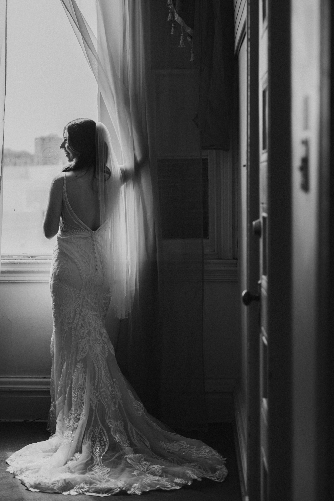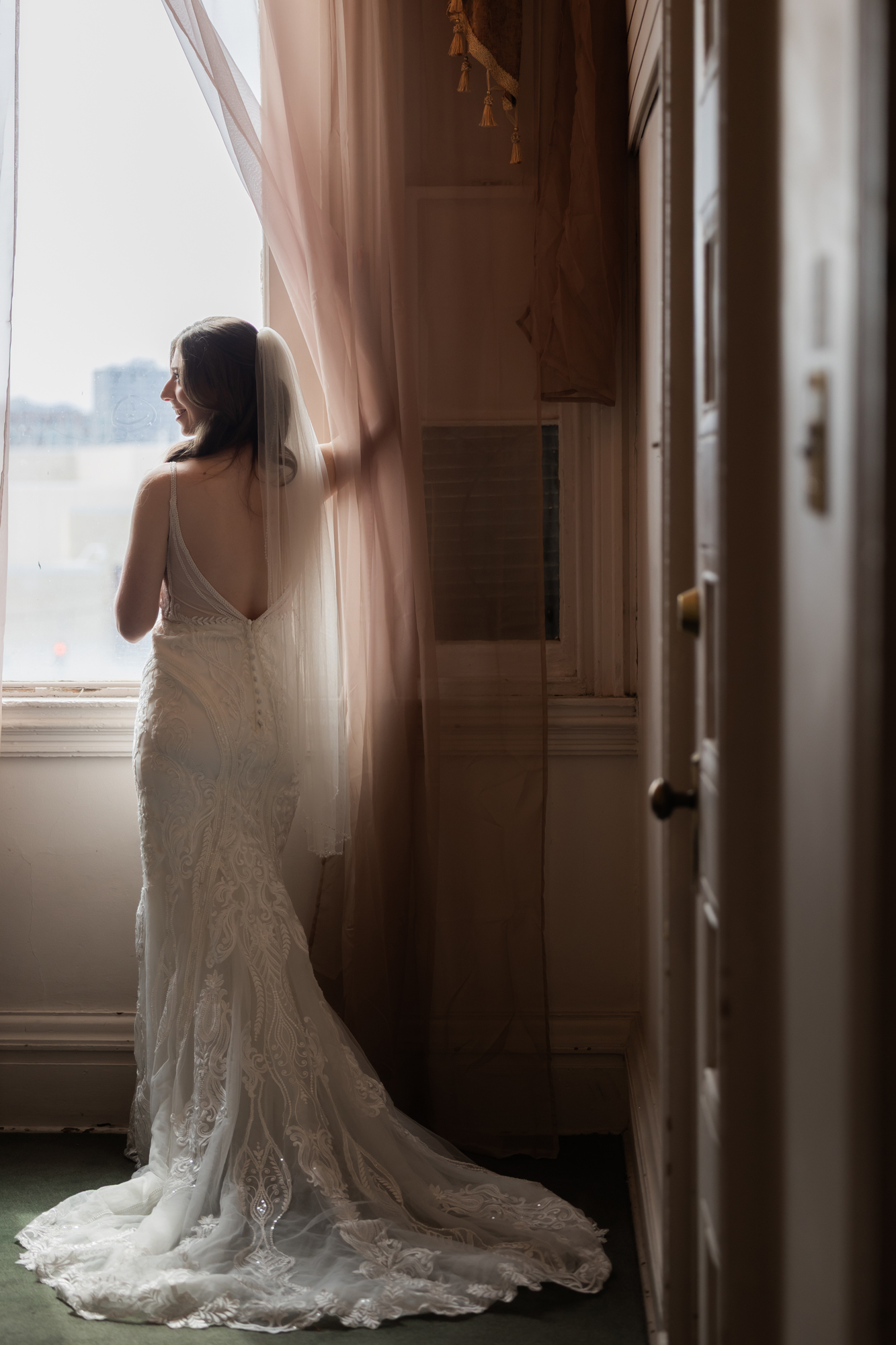 We spent time walking around The Bell for portraits, starting in the courtyard where the architecture creates such a romantic backdrop. Then we moved to the front steps and iconic doors for those classic, statement shots. Once the bridal party joined in, the energy picked up even more. There was so much laughter and such a fun dynamic with the whole group.