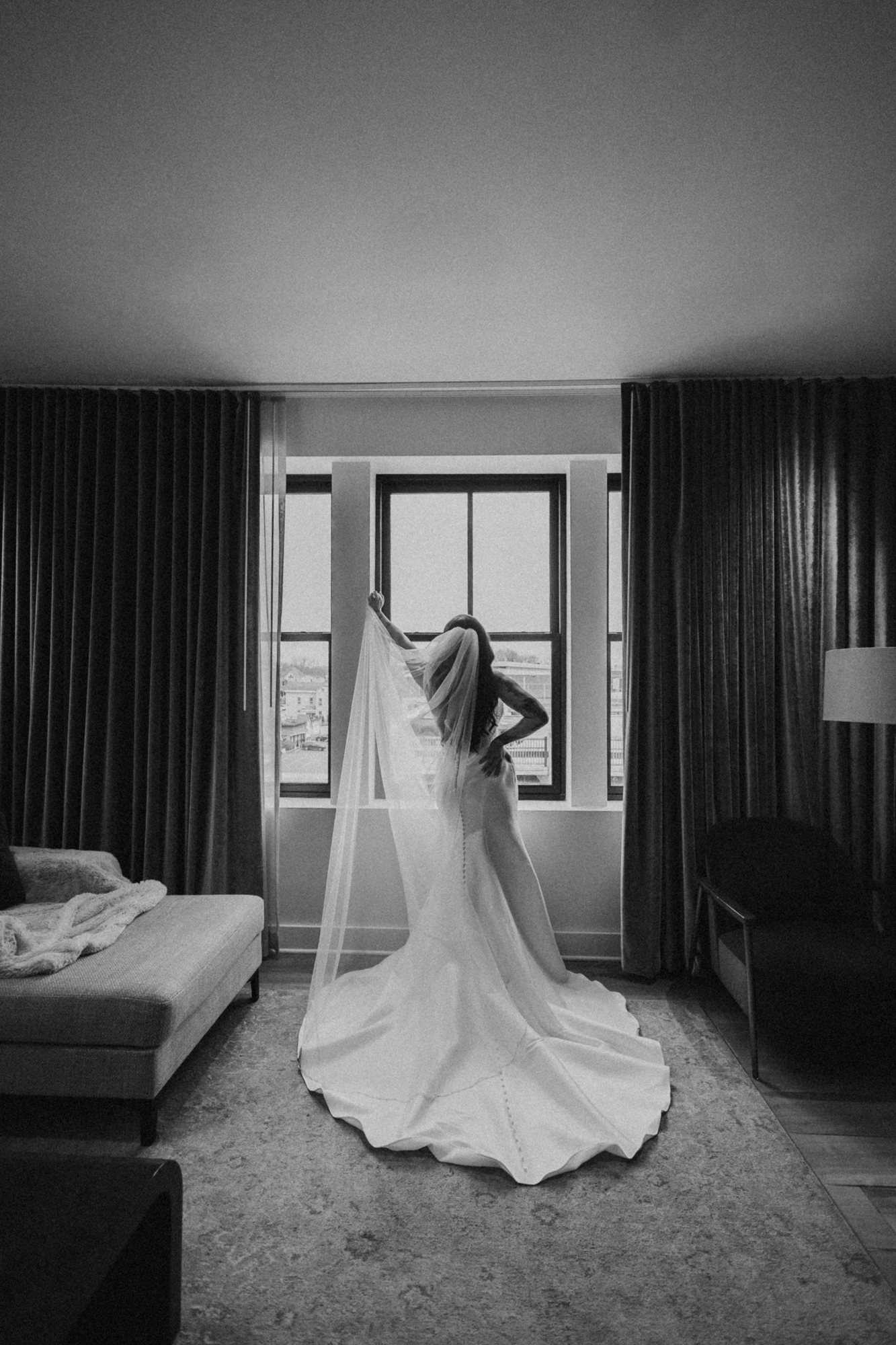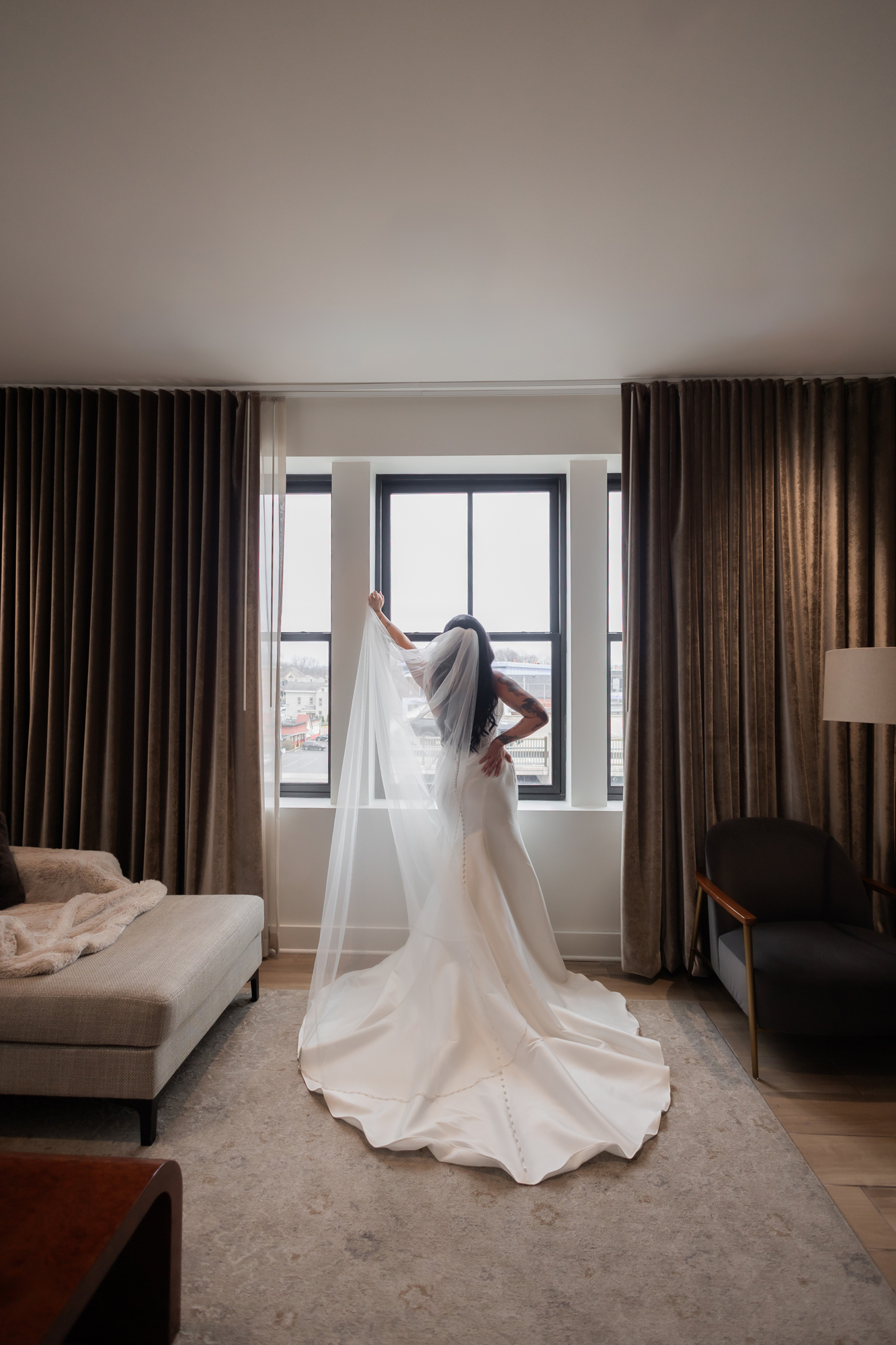 Afterward, we spent time with Derrica and Molly for more portraits, just the two of them. Out in the streets and in front of Hotel Covington, the focus stayed on their connection, letting each moment unfold naturally while still feeling elevated and beautiful.
