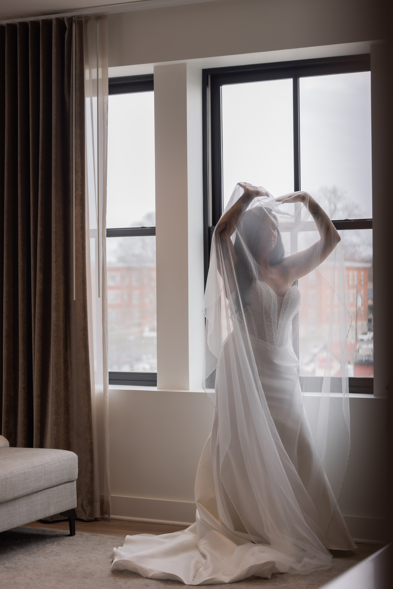 Afterward, we spent time with Derrica and Molly for more portraits, just the two of them. Out in the streets and in front of Hotel Covington, the focus stayed on their connection, letting each moment unfold naturally while still feeling elevated and beautiful.