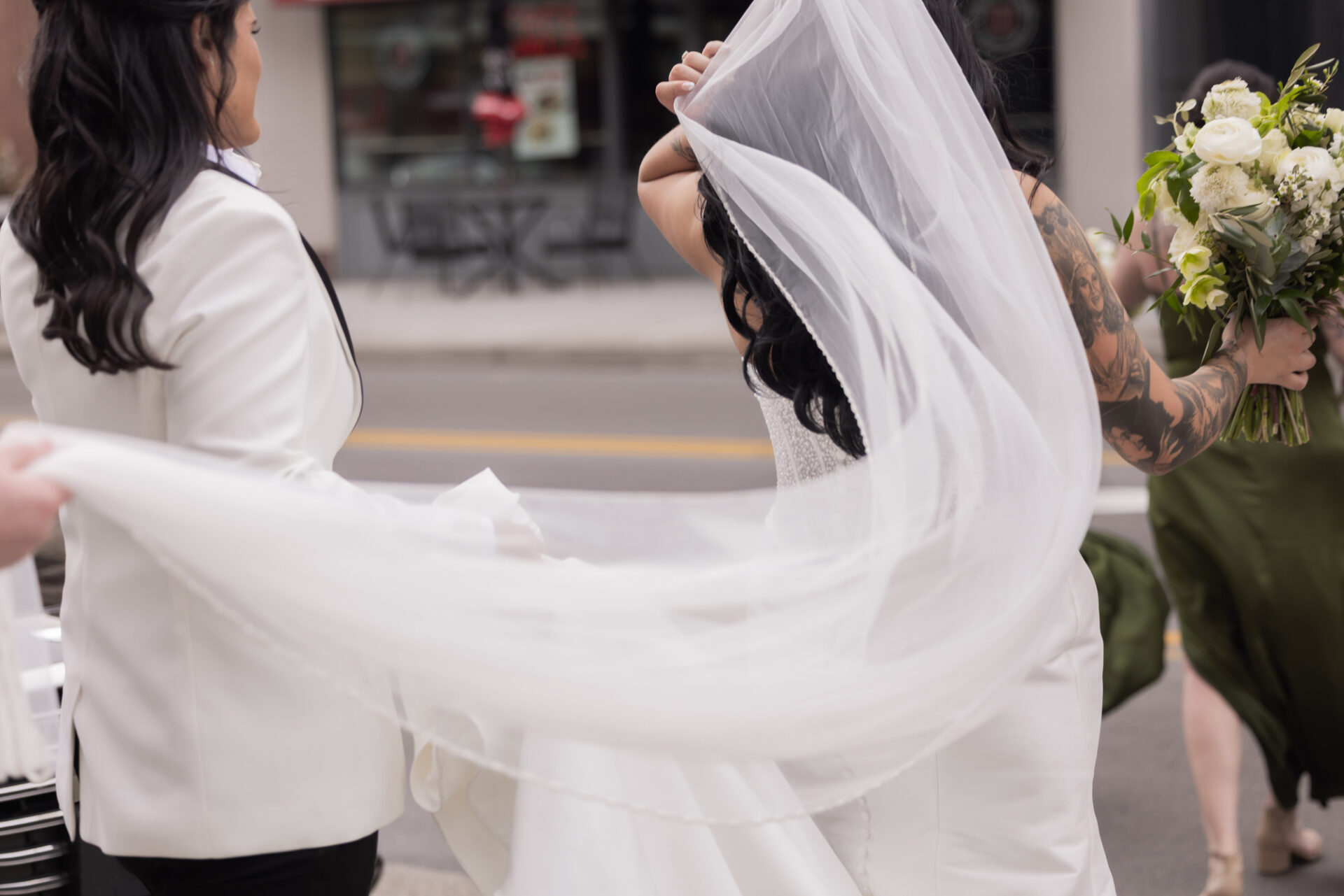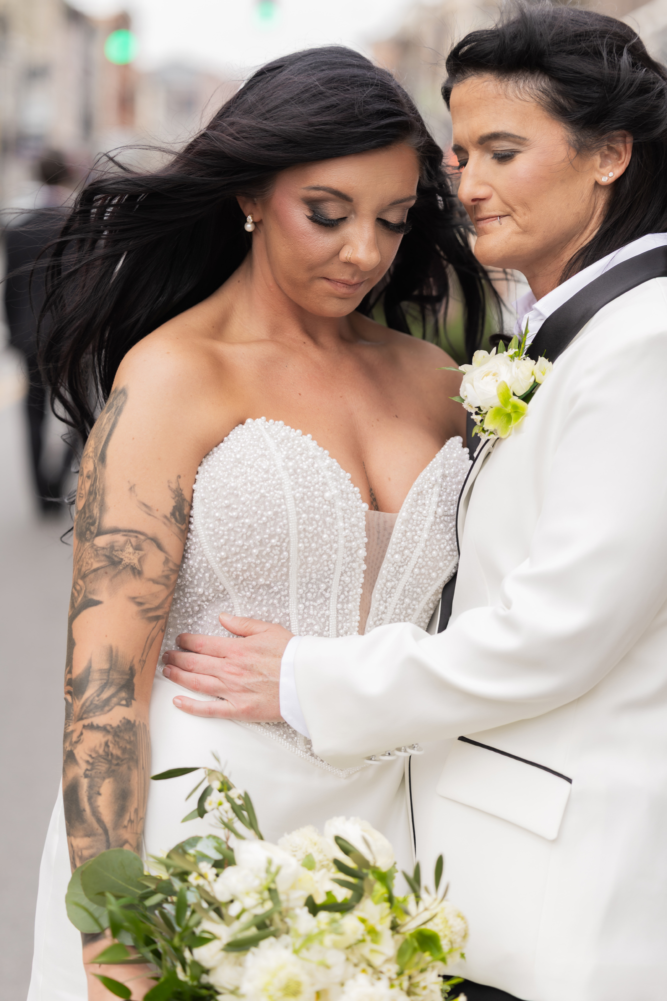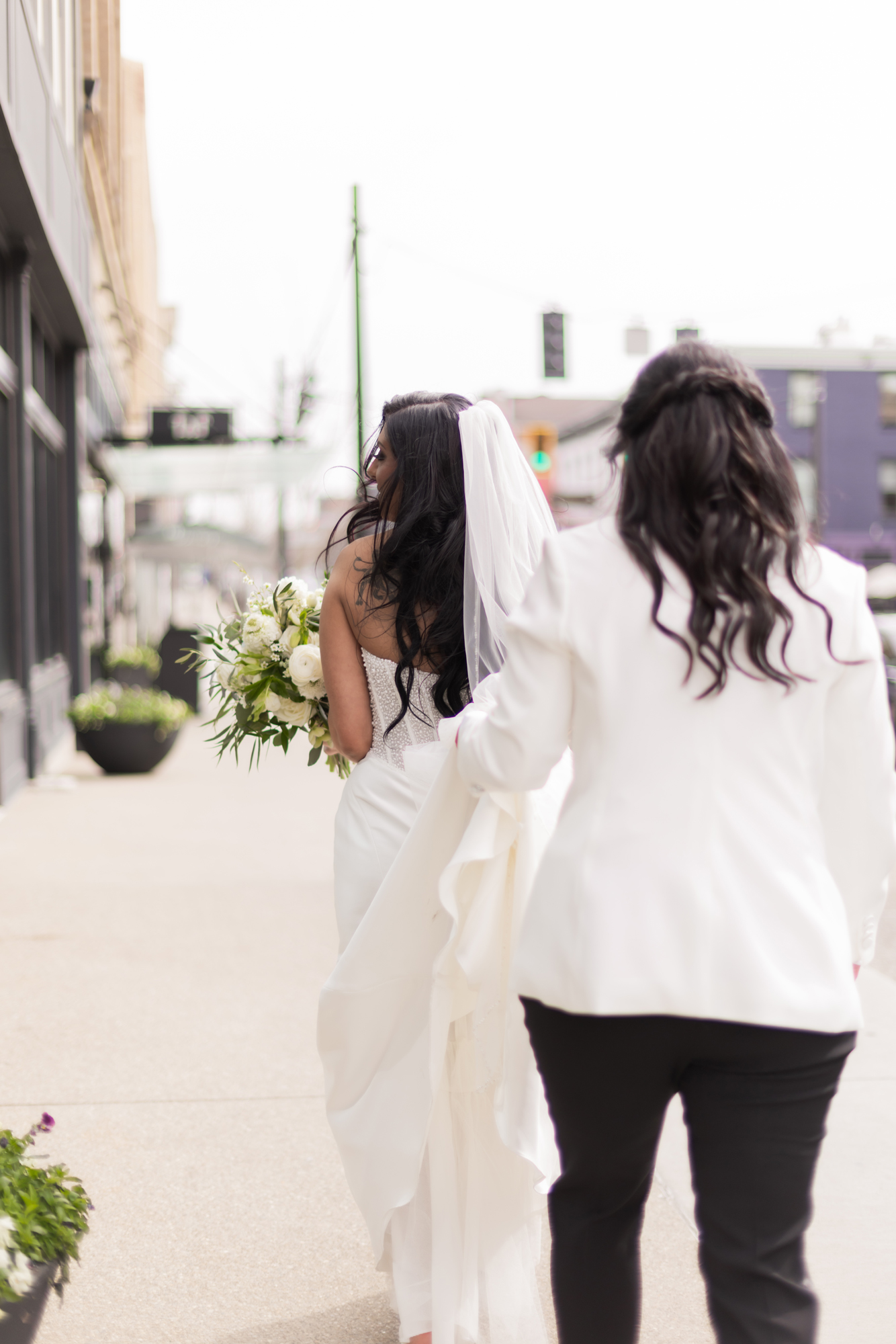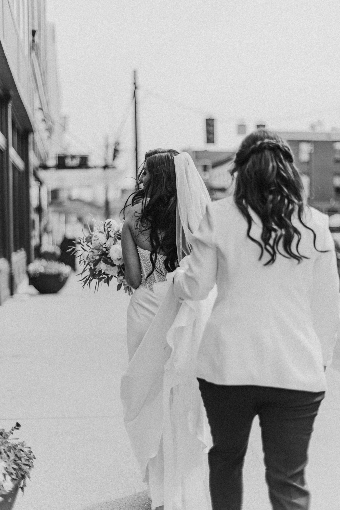 Afterward, we spent time with Derrica and Molly for more portraits, just the two of them. Out in the streets and in front of Hotel Covington, the focus stayed on their connection, letting each moment unfold naturally while still feeling elevated and beautiful.
